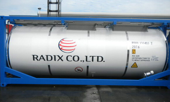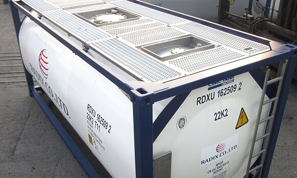 국제 해사 기구(INTERNATIONAL MARITIME ORGANIZATION)과 국제표준화 기구(INTERNATIONAL STANDARDS ORGANIZATION) 등의 국제 규격에 맞춰서 제작된 액상 화물을 수송하기 위한 컨테이너 입니다. 20FT 일반 드라이 컨테이너 규격의 프레임 내부에 원통형 용기를 설치하여 액체상태의 화물수송이 가능하도록 설계되어, 일반 드라이 컨테이너와 동일한 방식으로 작업(상차, 하차, 차량 적재 및 선박 적재)이 가능합니다. 저희 레이딕스는 화물의 특성에 맞게 T11, T14, T20, T22 등의 탱크를 공급해 드리고 있습니다.